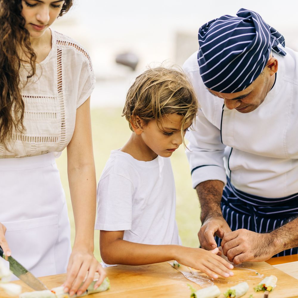 • Try Muay Thai boxing, flower weaving, mask painting, tree-top dining, watersports, Thai cooking and guided stargazing with daily fun, educational activities throughout.